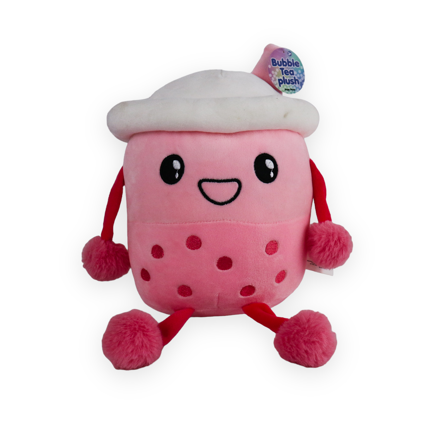 BUBBLE TEA POM POM Soft Stuffed Plush Toy Pink Cute Cuddly – 26CM