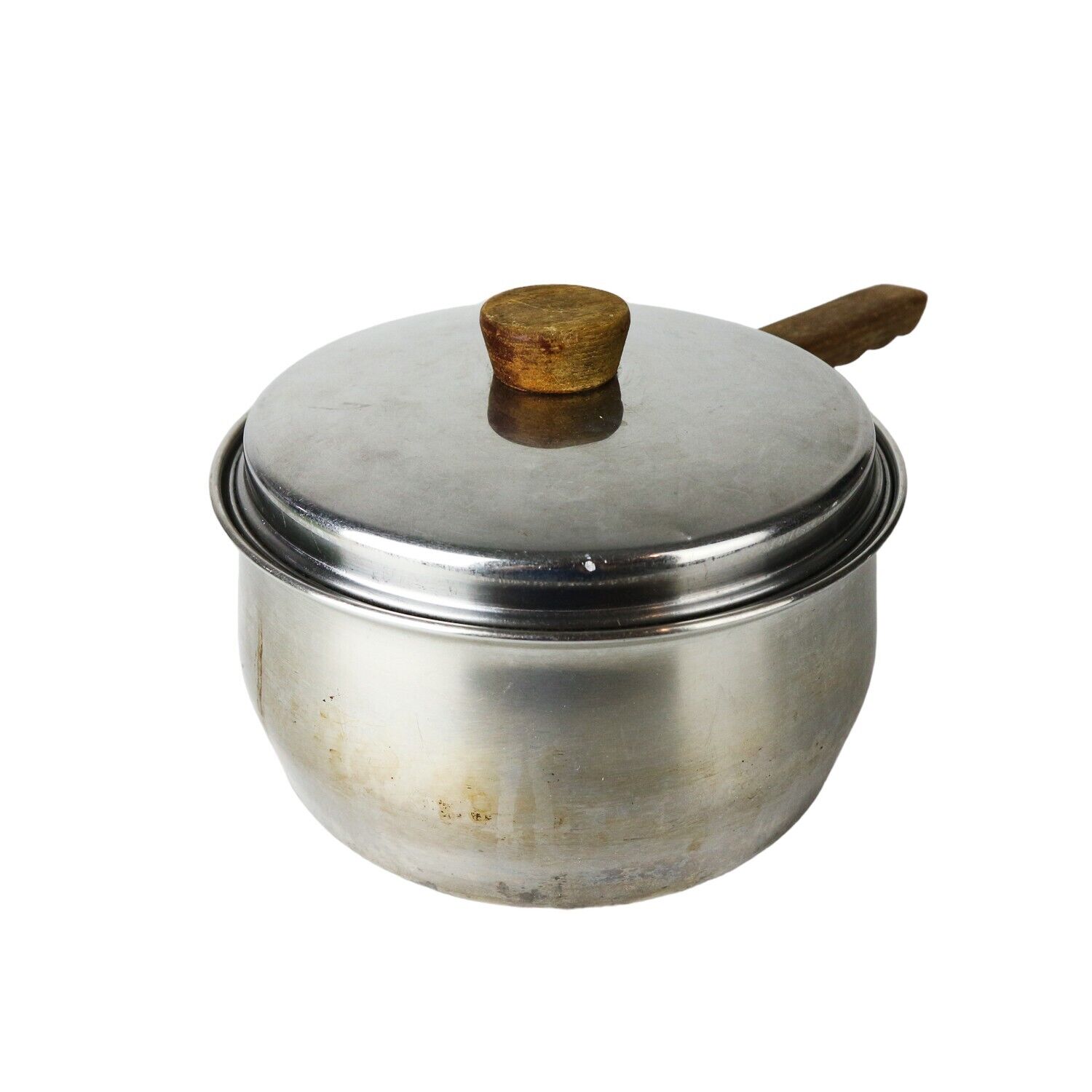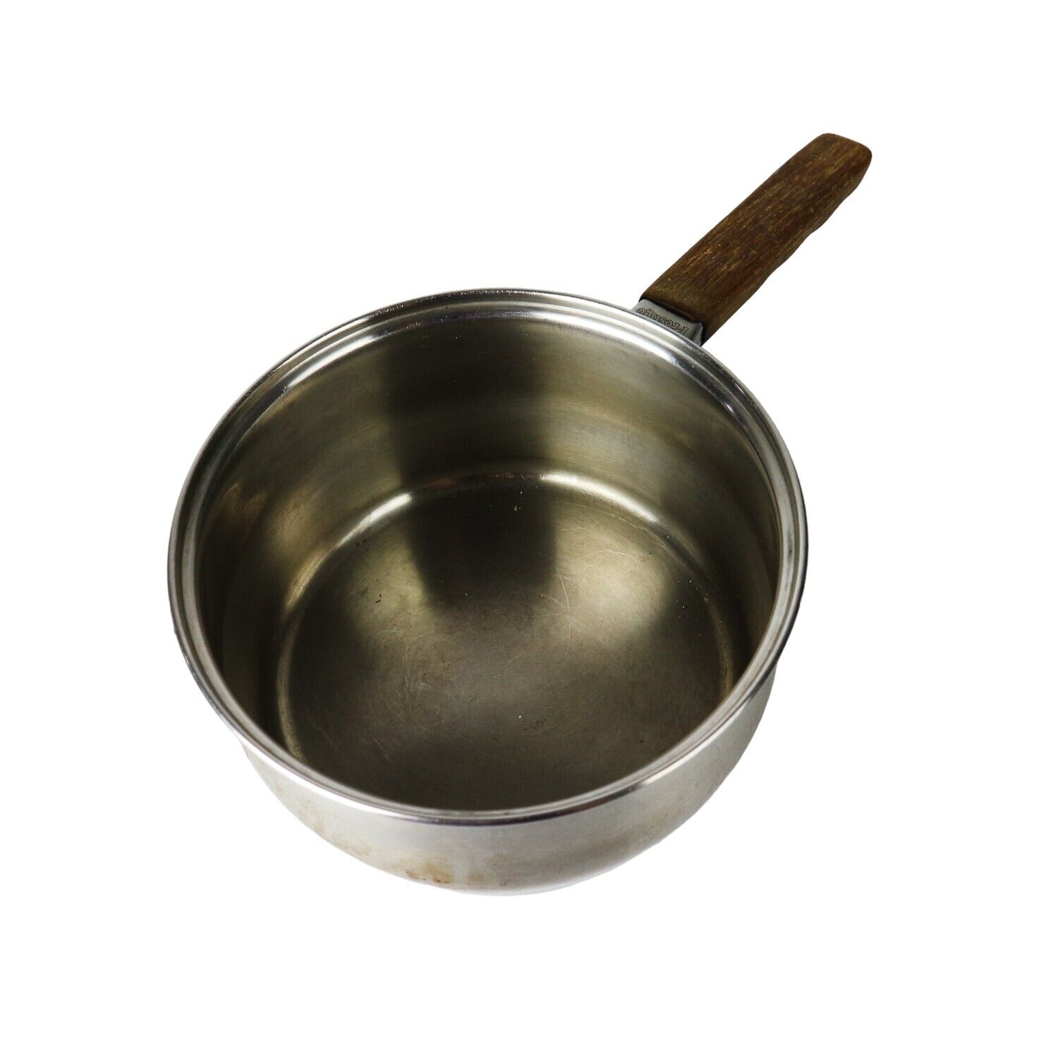 Set of 3 Vintage Prestige Copper Bottom Sauce Pan, Pan & small pot wood handle