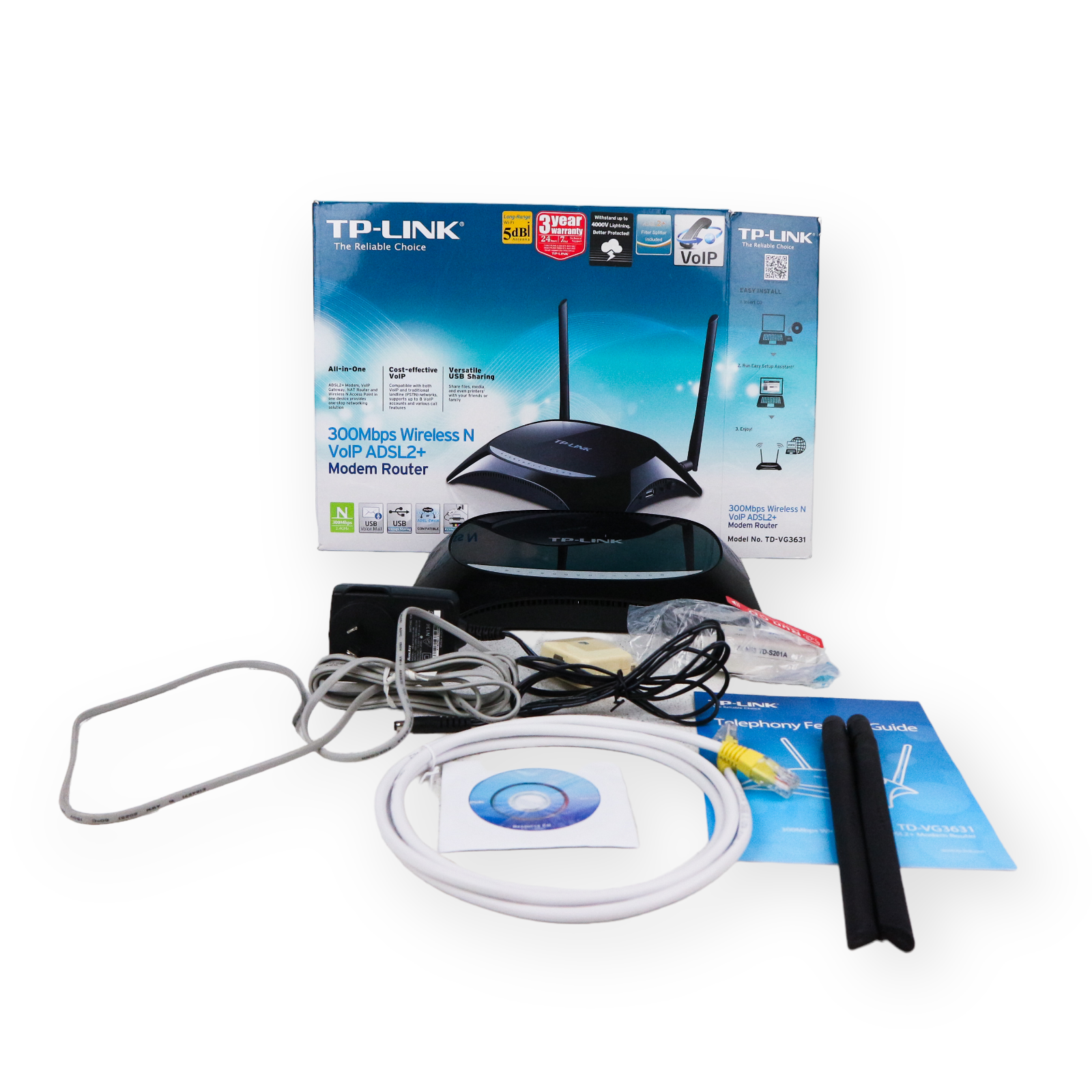 TP-LINK TD-VG3631 Wireless N300 VOIP ADSL2+ Modem Router, 2.4Ghz – USED