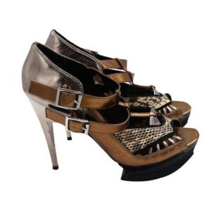 Pedro Garcia Gold Silver Leather Python Print Styletto Shoe Womens Size 40